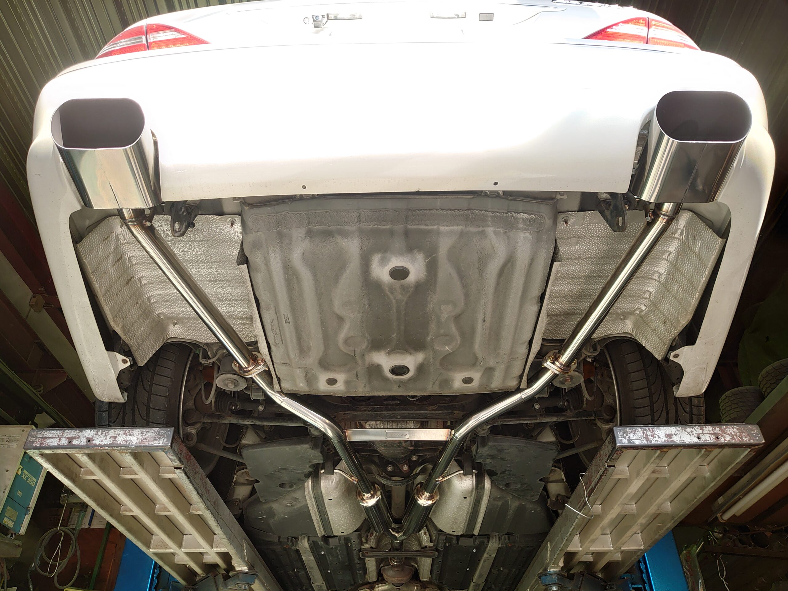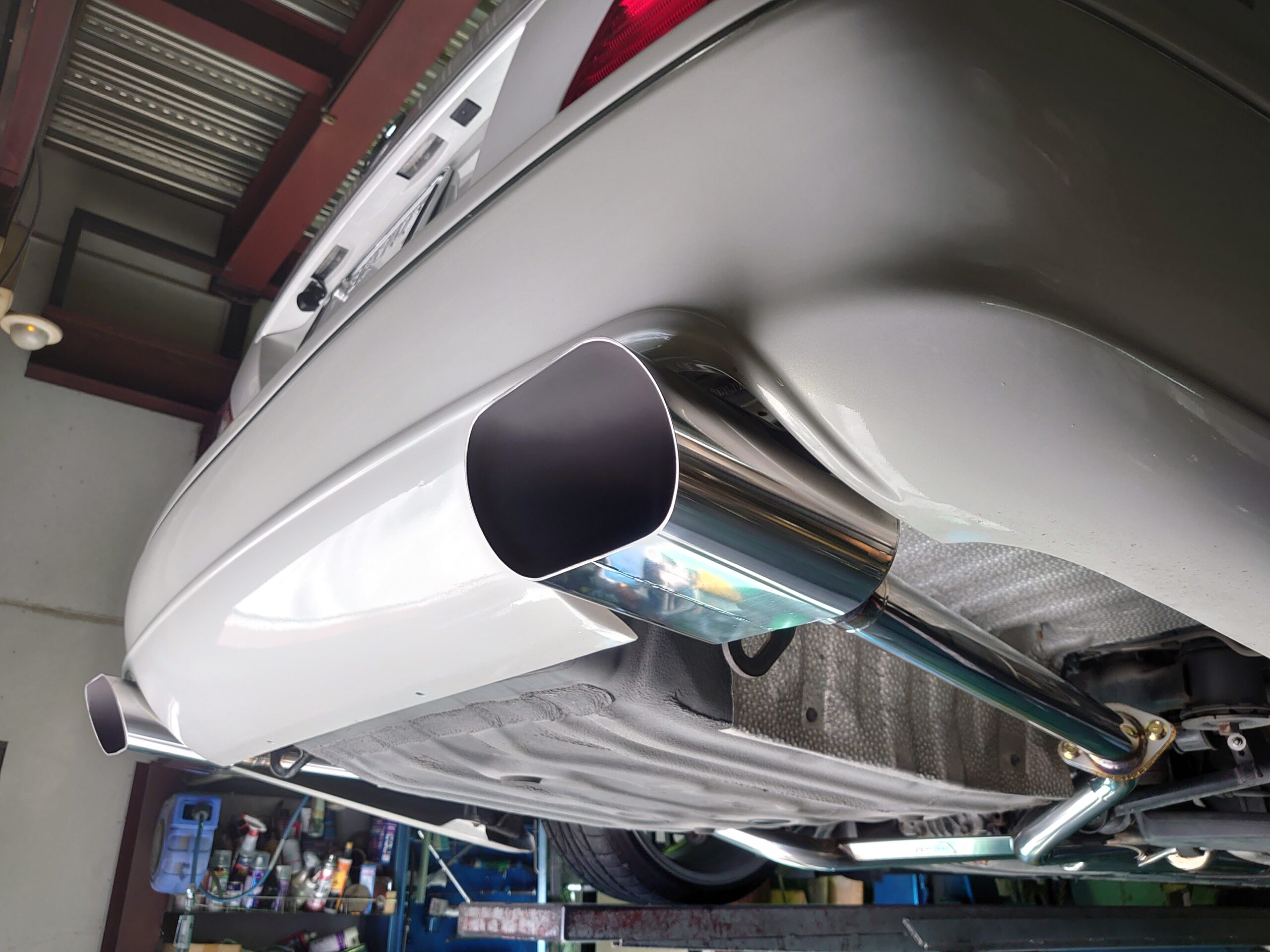 4. フィッティングと一体感: VIPカーは車体との一体感が非常に重要です。ワンオフマフラーは、TOYOTA CELSIORの美しいシルエットにピッタリとフィットし、車両の全体的なバランスを美しく整えました。車両とマフラーが一体化した美しい外観は、VIPカーの風格を最大限に引き出します。